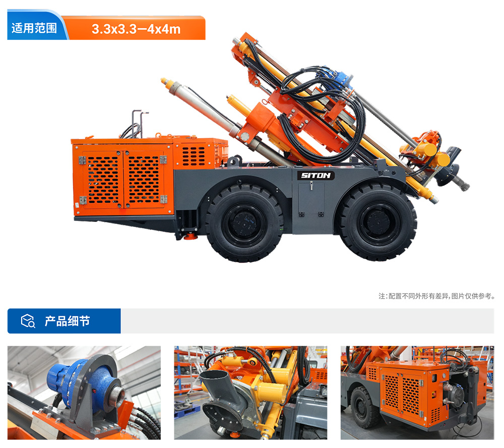 KODT-125是一款輪胎式礦用潛孔鉆機(jī),電壓等級(jí):380V,采用潛孔沖擊器作業(yè),閉式四驅(qū)液壓系統(tǒng),適用于3.3-4m地下采場(chǎng)環(huán)形孔的穿鑿,是專(zhuān)用的穿孔設(shè)備,也可用于天井和斜井的開(kāi)鑿及回采作業(yè)。主要功能和裝置如下:適用于鉆孔直徑范圍120-254mm,鉆孔深度0-100m;鉆架可環(huán)向360°旋轉(zhuǎn),前后-10°-55°度擺動(dòng),適用于環(huán)向打孔;鉆臂裝載有液壓穩(wěn)桿機(jī)構(gòu),保證鉆孔直度,偏斜率≤1%;機(jī)身配有頂升支腿和后擺動(dòng)橋,可在路面坑洼惡劣條件下工作;設(shè)備四驅(qū)驅(qū)動(dòng),可實(shí)現(xiàn)360°轉(zhuǎn)彎,原地掉頭;長(zhǎng)距離移動(dòng)時(shí),設(shè)備可解鎖制動(dòng),且配備牽引,方便使用拖車(chē)進(jìn)行快速移動(dòng);鉆機(jī)回轉(zhuǎn)具有無(wú)級(jí)調(diào)速功能,可根據(jù)不同巖層狀況調(diào)整鉆速,提高效率;且設(shè)備配置遙控裝置,方便操作人員操作設(shè)備的同時(shí),提高了操作安全性和可靠性;設(shè)備配備了沖洗裝置,方便操作人員清理設(shè)備,維持設(shè)備整潔,提高設(shè)備使用壽命。